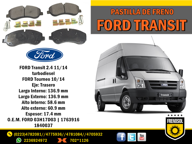#LANZAMIENTO #PASTILLADEFRENO #FORD #TRANSIT #TOURNEO