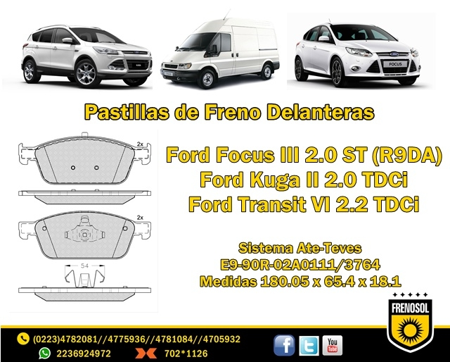Llegó un esperado lanzamiento. Pastillas de freno Delanteras aplicables al FORD Focus III 14/ FORD Kuga II y FORD Transit VI.-