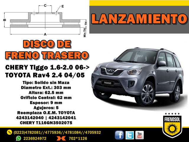 #LANZAMIENTO #DISCODEFRENO #TRASERO #CHERY #TIGGO #TOYOTA #RAV4